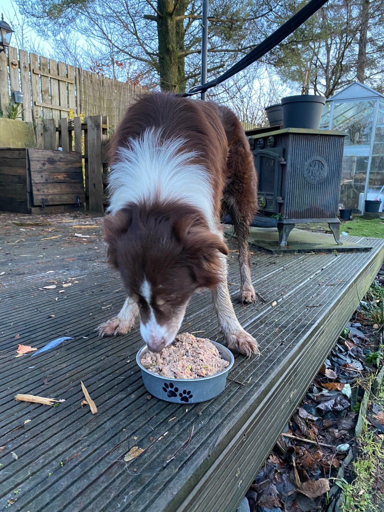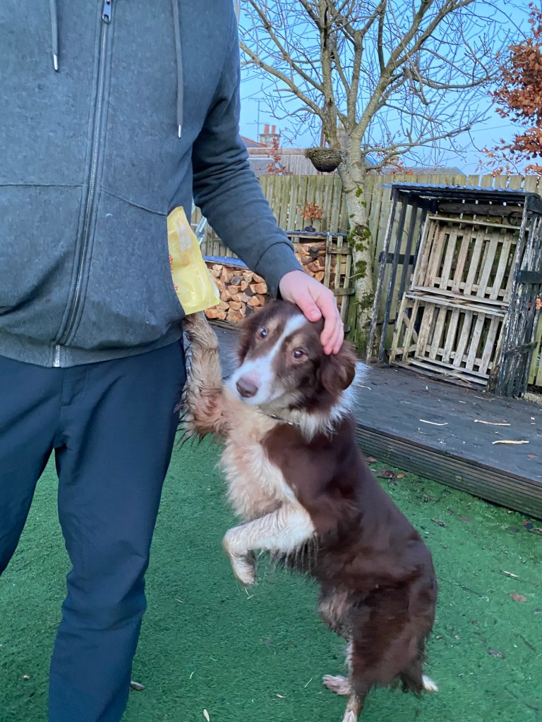 It was freezing outside, Craig took her round into the back garden and by this time she was was much calmer and looking for food. She was also wolfing the natural treats we took out.