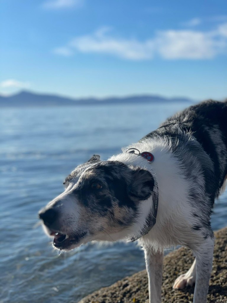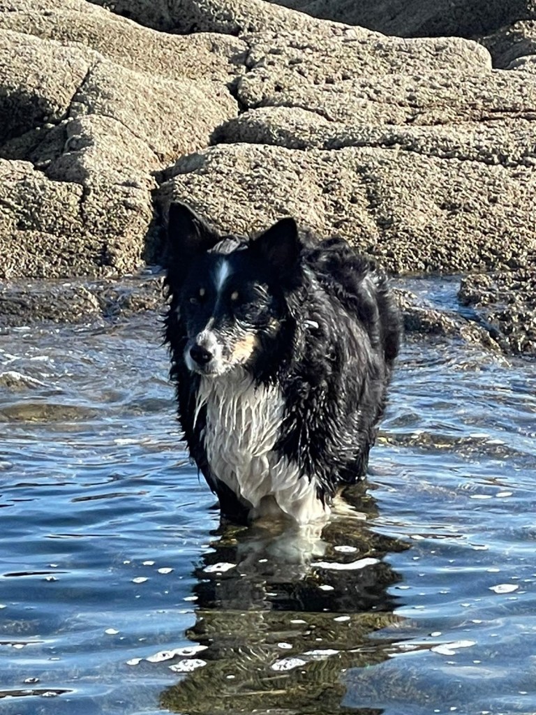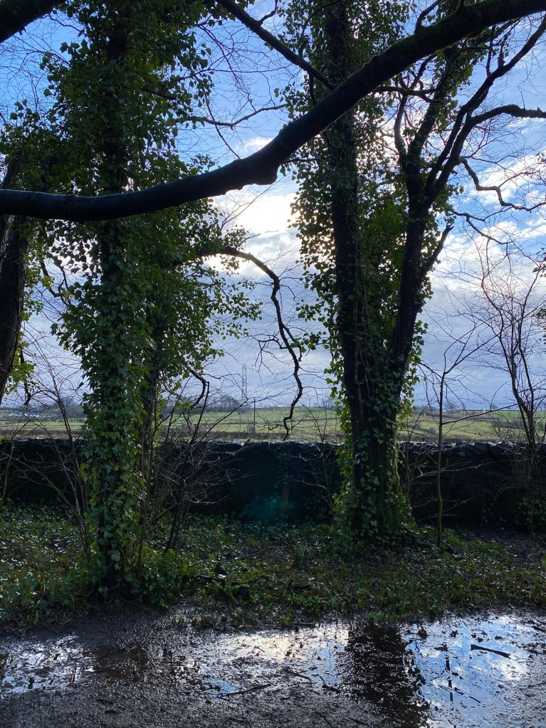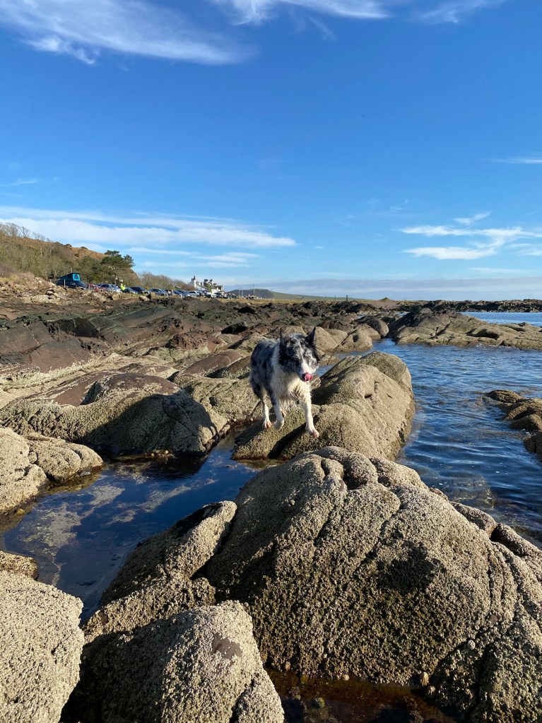 Don’t be fooled…. very windy and very cold! Still very beautiful 🤩 Almost 🌼🌼🌼THE gate with a lovely blue sky Walk on hold while Craig hunts the poo to be picked up 🧐Keek!!!! Washing our paws 🐾🐾🐾The reflective puddle is back Here she is…. coming to see where we all are and enjoying the sun.