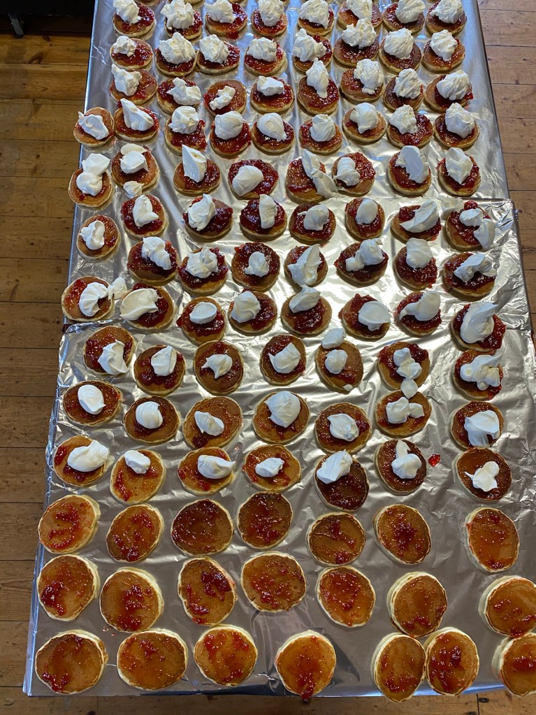 I was jammin’ this morning!! 120 scone halvesSomeone else was on pancakes and then they all needed cream added!