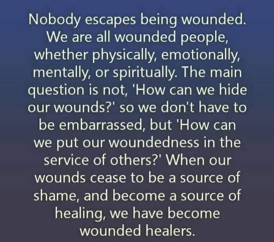 I would like to think that I share my woundedness on a daily basis so that others may realise they are not alone. This is a very tough time for us all and we need to remember how had it has been. Our way of life has changed.