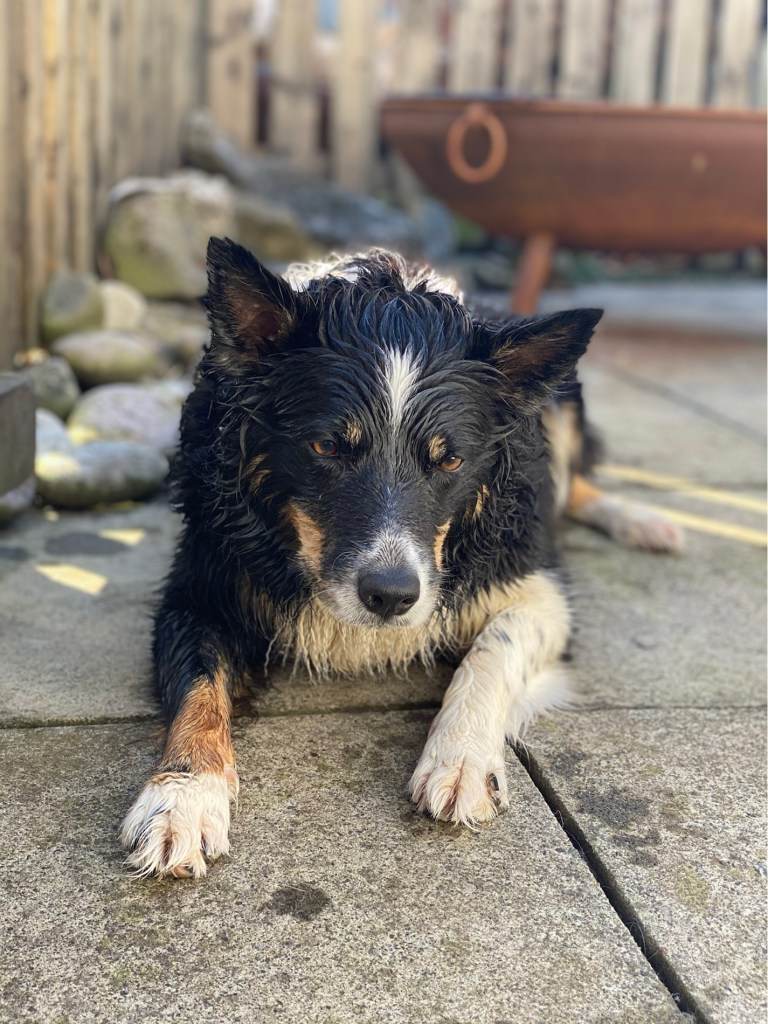 Craig had been washing the Jeep and always uses the last of the water to cool the pups off. This is Bhruic drying herself off!!