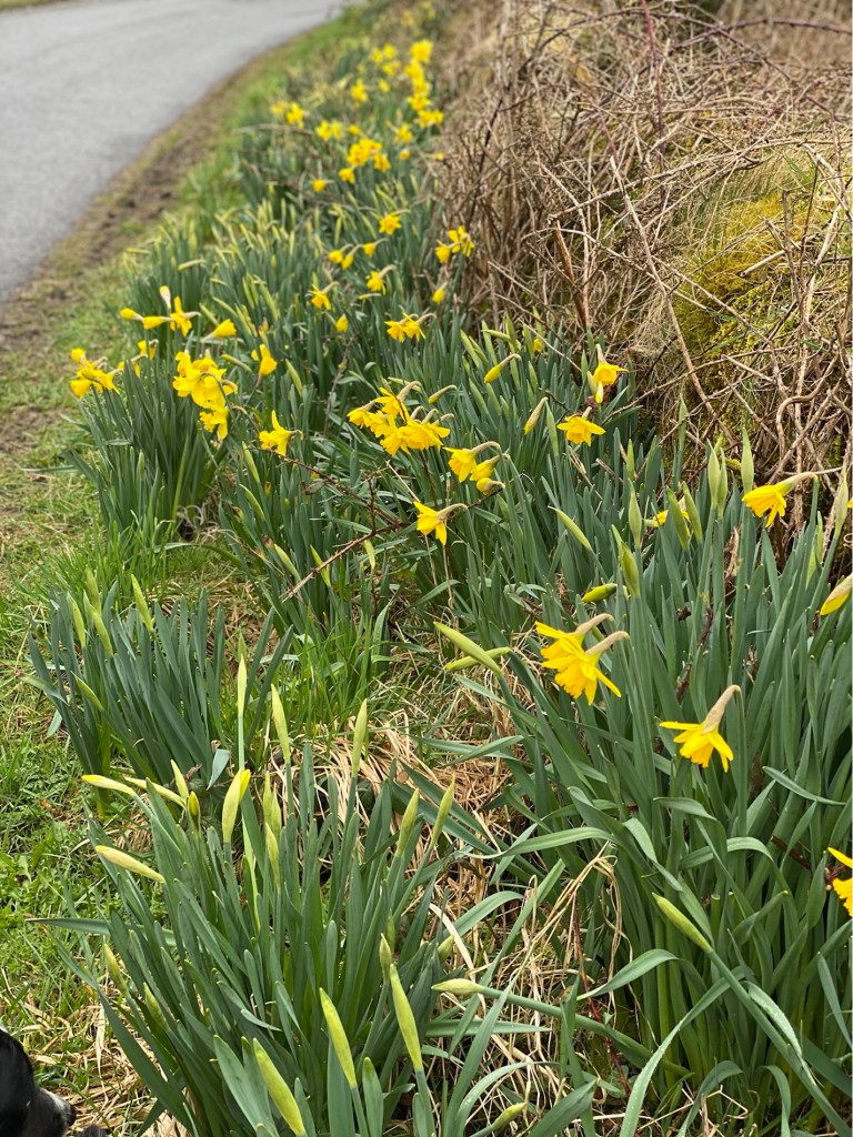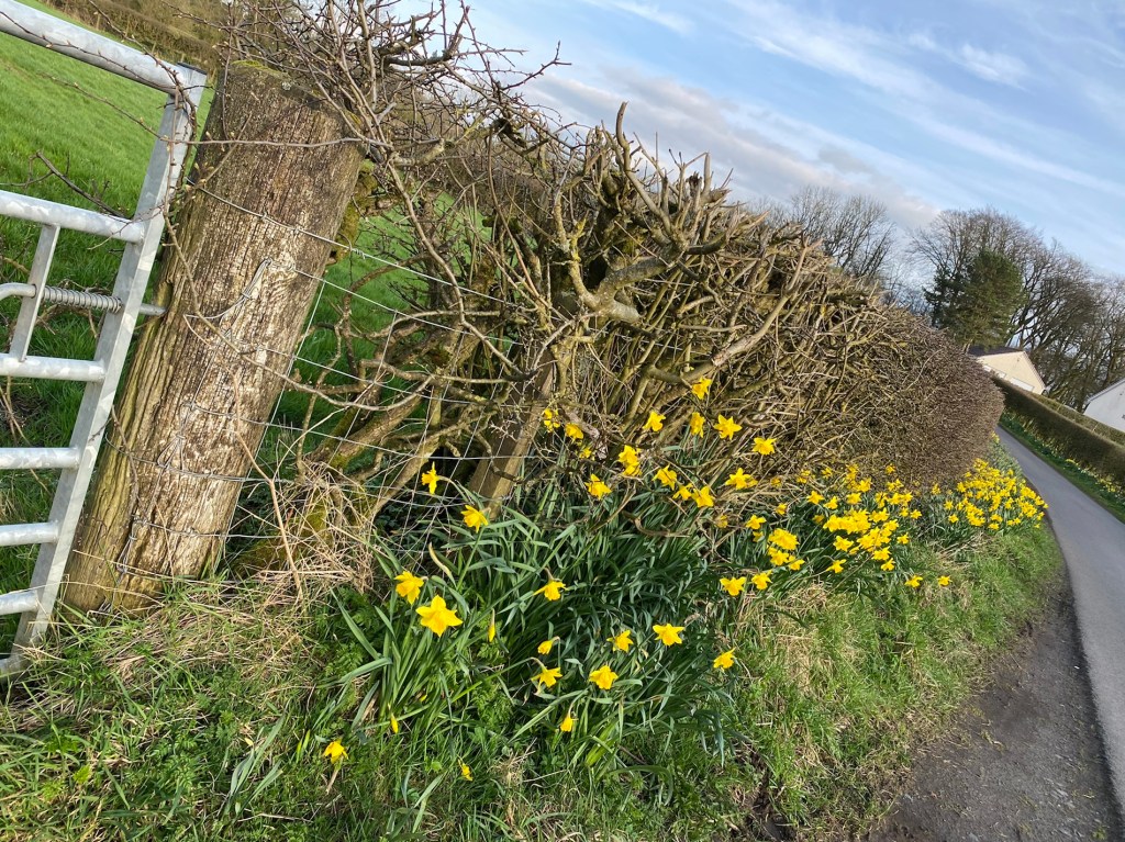 Come on mumma says Freya! Could Calaidh be any more angelic?!?Freya with her stick looking like a thin cigar!! Daffies 🌼🌼🌼The pylon has been out the field and left the gate open?!?!?! Our flowers from mum and dad are looking lovely!
