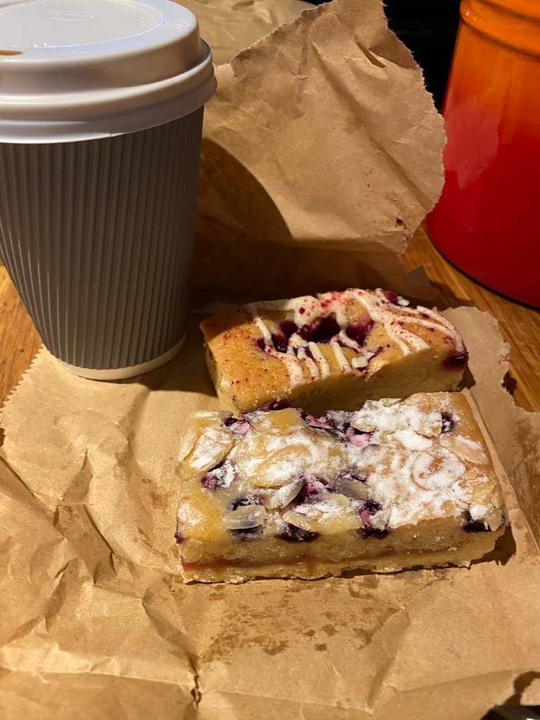 To the front is blueberry bake well tart and the back one is wild cherry and white chocolate blondie. They were both amazing but the blondie wins!