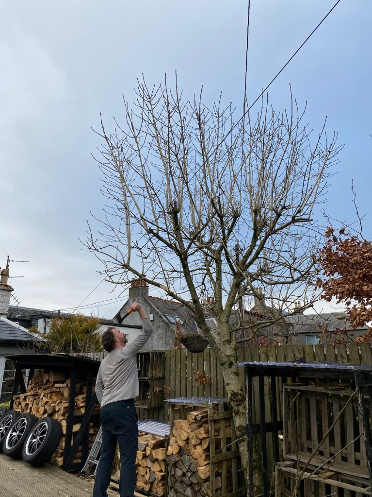 Craig then chopped some branches off one of our trees that was affecting a phone cable going to next door. 4 big branches hacked down and cleared away to dry for future kindling.