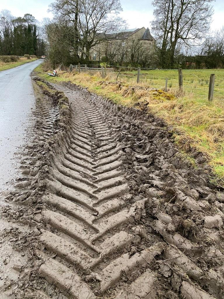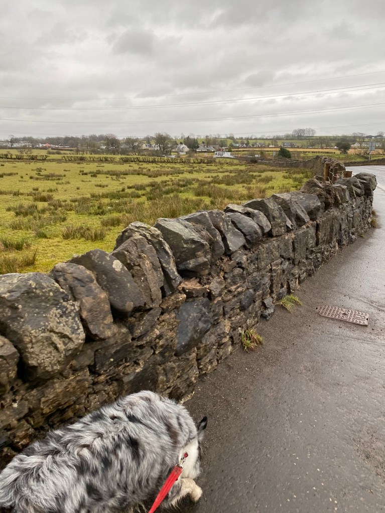 Check the size of these tyre tracks 🚜 The farmer had been muck spreading over the weekend so you can only imagine the smell 💩💩💩Big stick time Not had many photos of Freya the last few days Moody gate! Old gnarly and moss covered wall Most of the old drystane dykes are falling down around here Very mossy tree! Not taken a pic of this before as it’s not that photogenic but it could have been if that makes sense? Gielsland Estate St Inans building, now used for storage. Heading down into the village