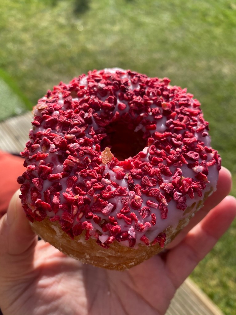 This……. is a YumNut…… a yum yum in the shape of a doughnut 🍩 with raspberry topping. Out. Of. This. World.