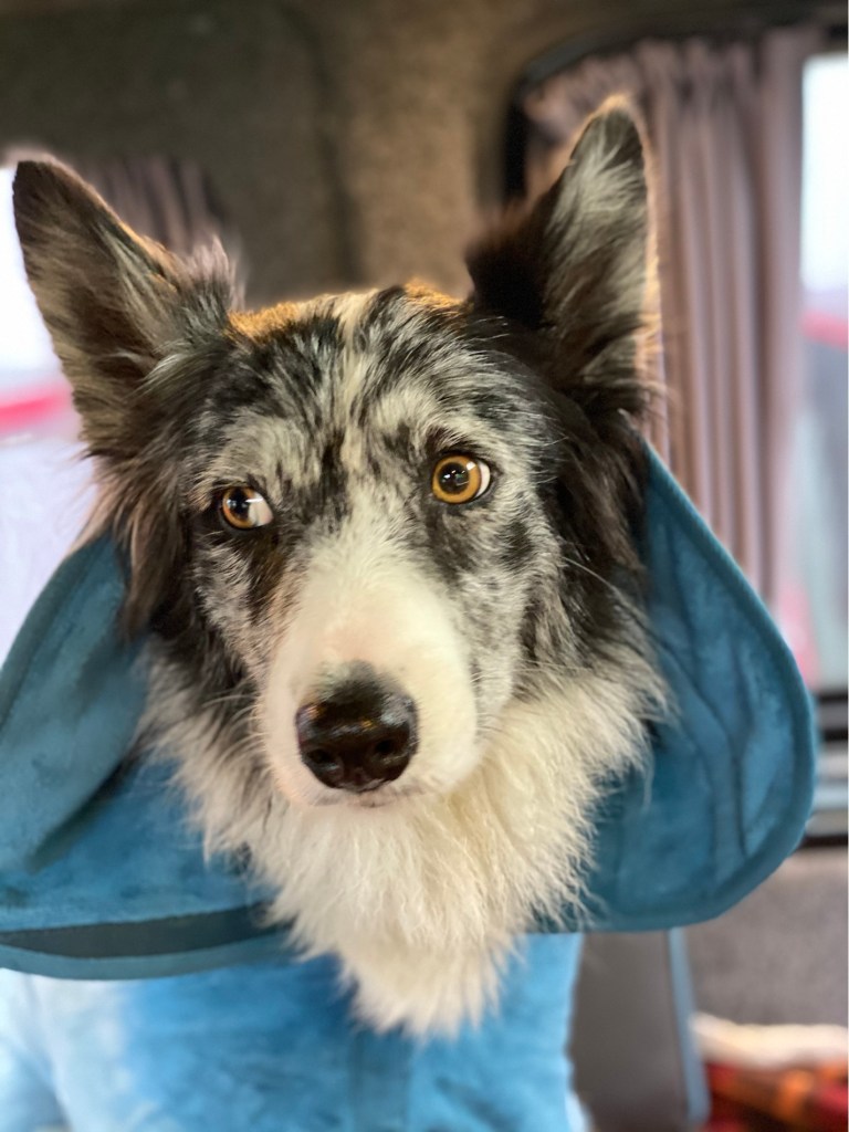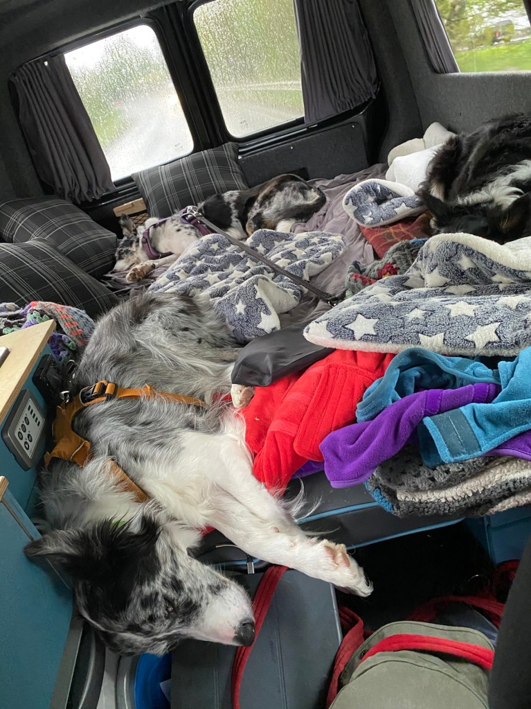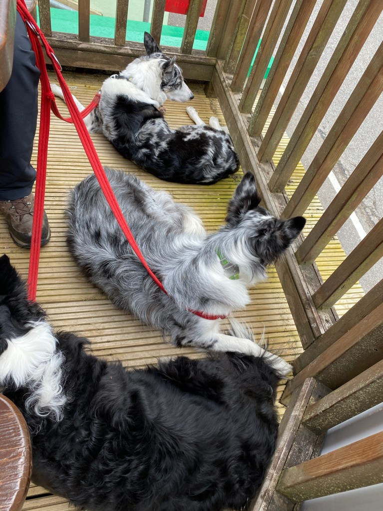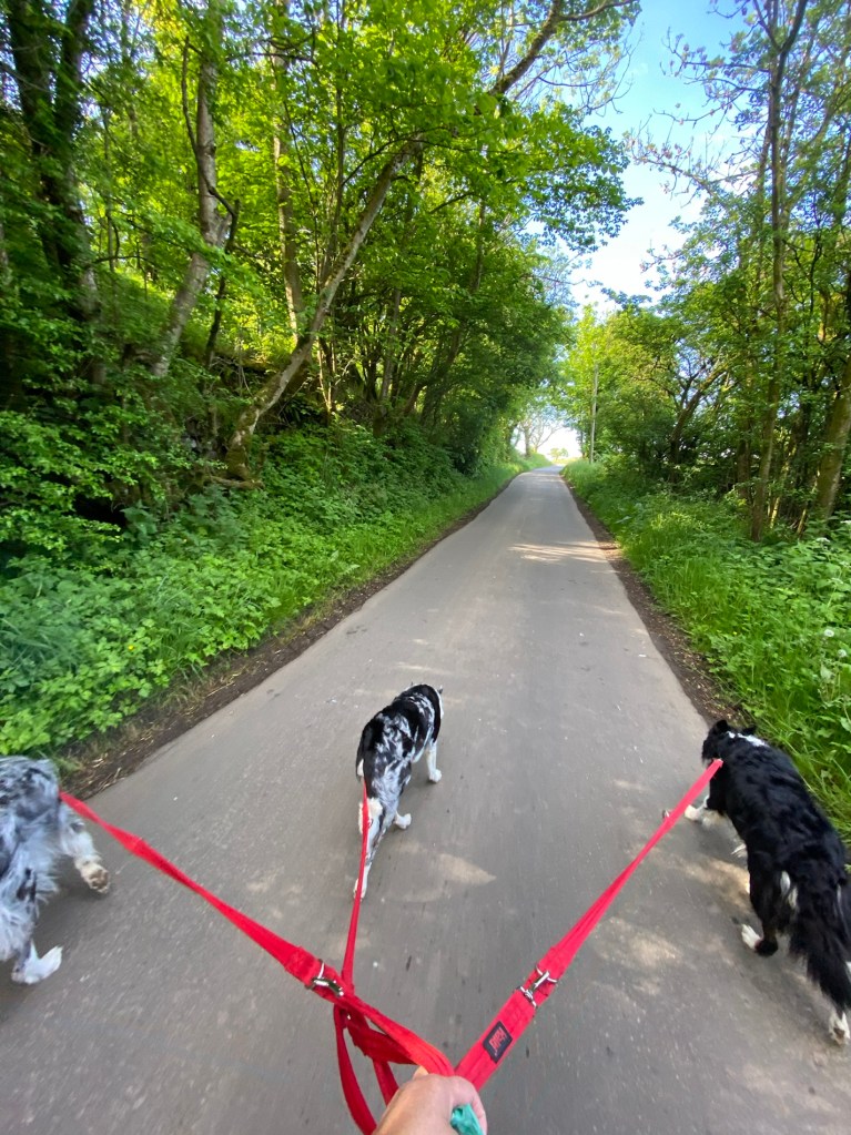 Straight into the shower as I was soaked and muddy. Then out with the dogs before it gets too hot. I say that and it’s roasting…. I didn’t let them off the lead so they didn’t run too much.