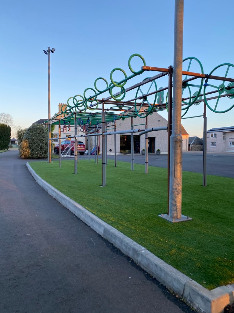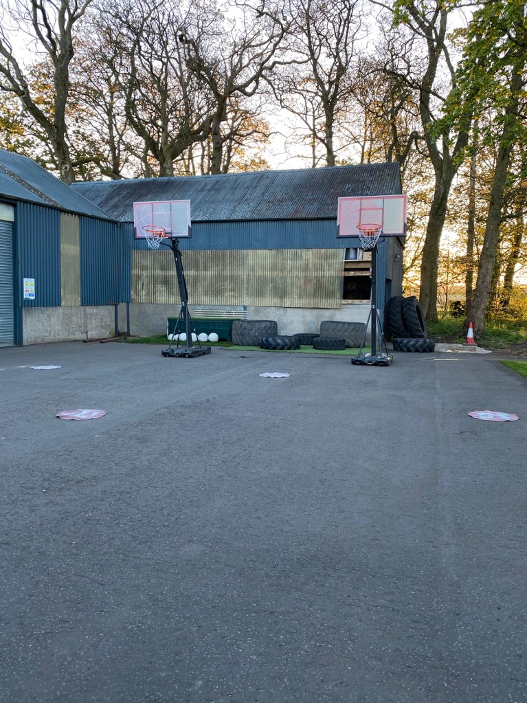 It was a cold and frosty morning. Abbie needed a good ice scrape…. on the 5th May?!? Usually our summer by now. Sunrise over the van at Fit Body FarmThe walk from the car park…. it’s a lovely place This is the rig where lots of the outdoor work is done We did a basketball challenge this morning
