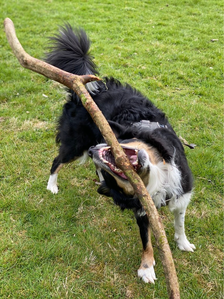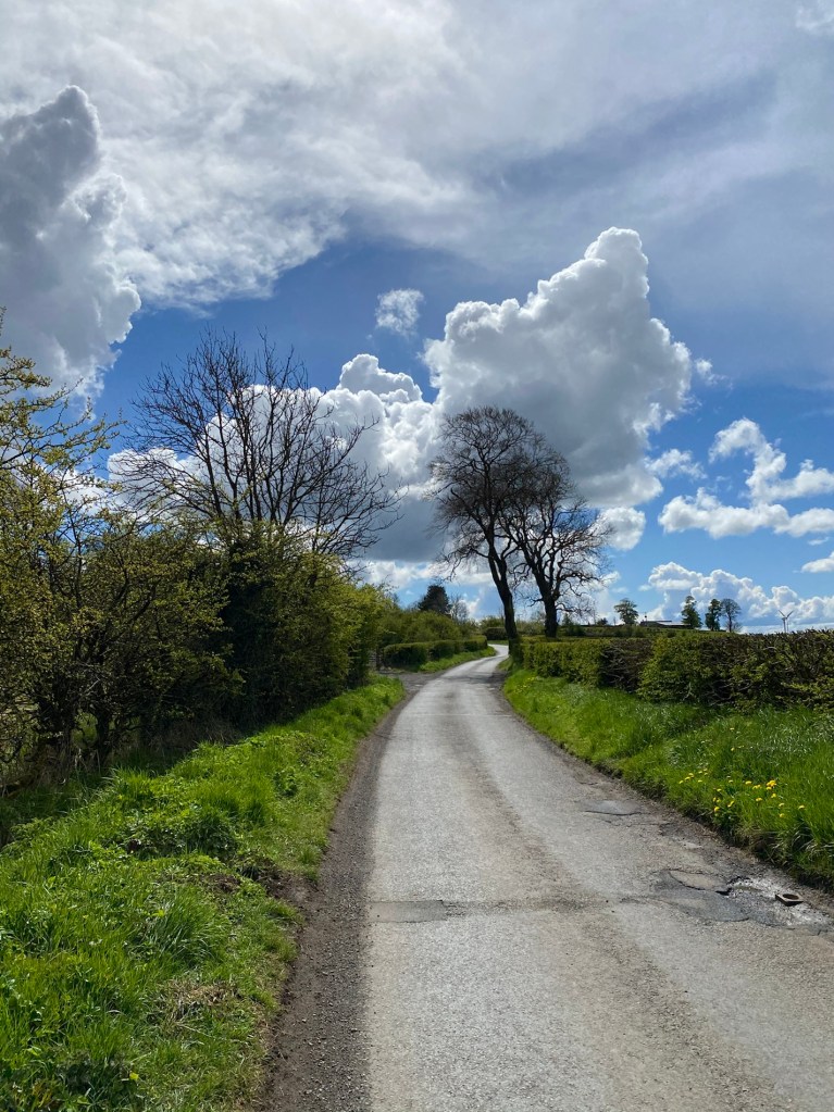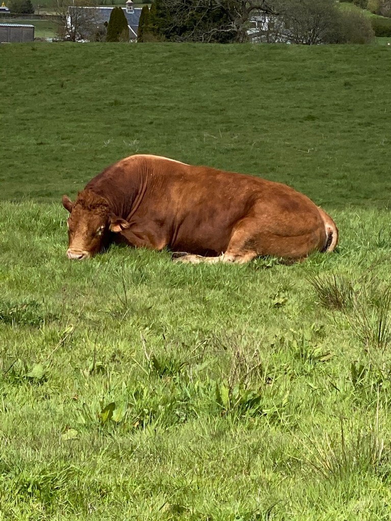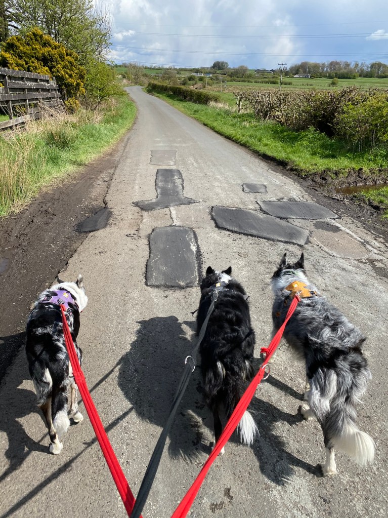 Lovely clouds Gnasher Calaidh found a very big stick! There’s an abundance of wild garlic growing in Spiers School Grounds The puppers are showing that the giant potholes on the Gielsland Road have finally been filled for local readers!!So beautiful in the country Bhru checking out the coos This big guy was having a snooze
