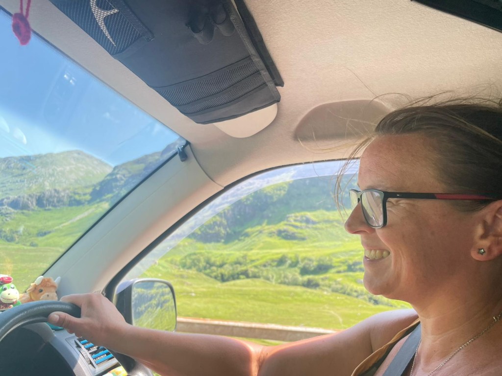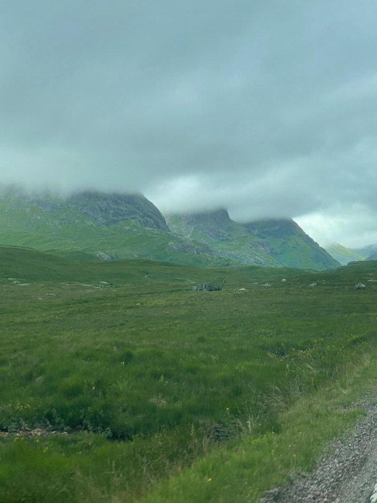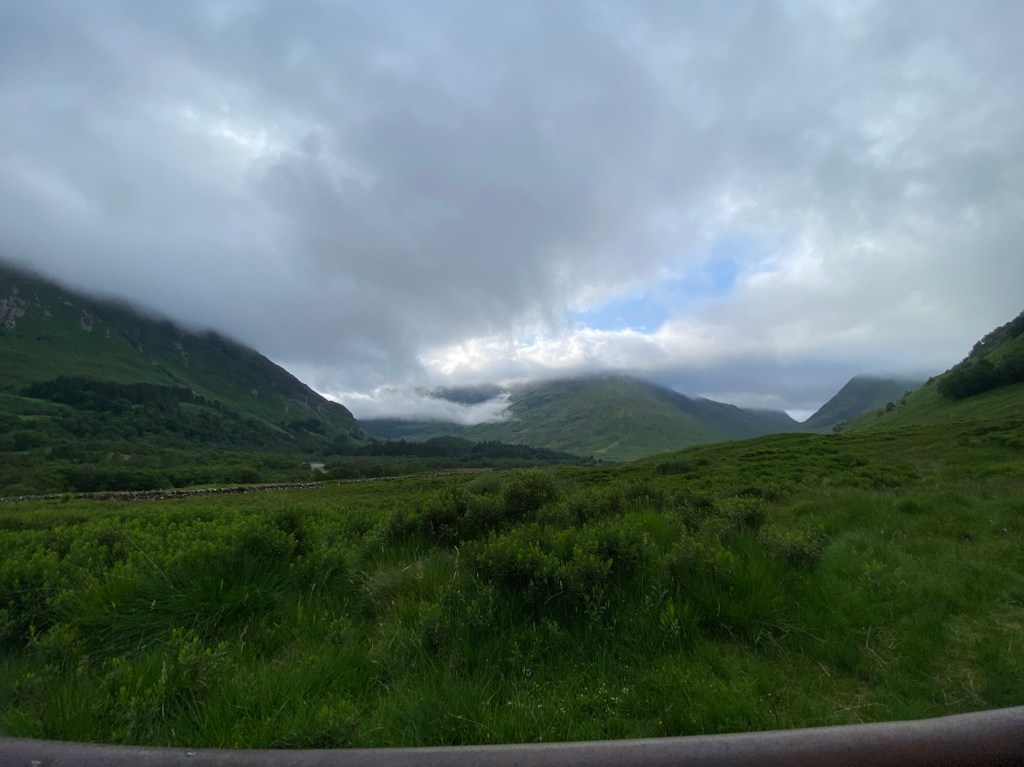All secured in… all present and correct! Abbie is higher than our house! Funny how this bit of road on the way to Loch Lomond makes me feel like I’m on holiday! Driving past Loch Lomond Stopping at The Green Welly Stop in Tyndrum Dogs have been walked! 30 miles to GlencoeShame about the cloud but this is one of the best pics of the Three Sisters in Glencoe. My copilot did very well with his photography one cue. The first of the Three SistersThis is the Hidden Valley with some mist sitting right up in itLooking up to Bidean nam Bian