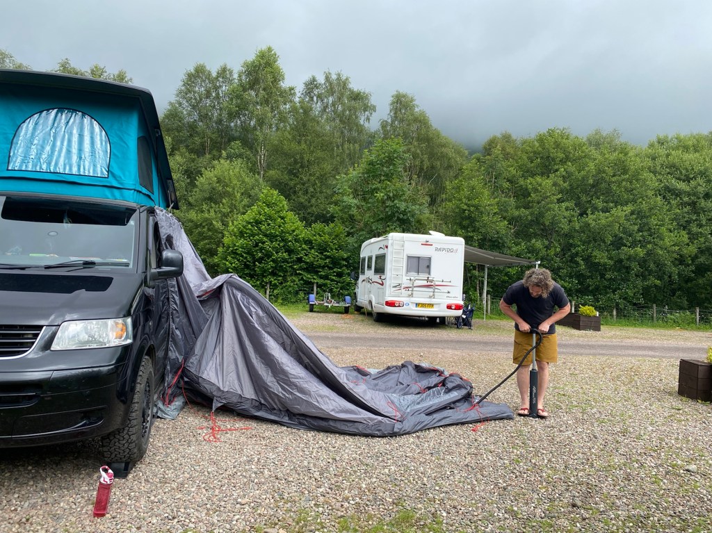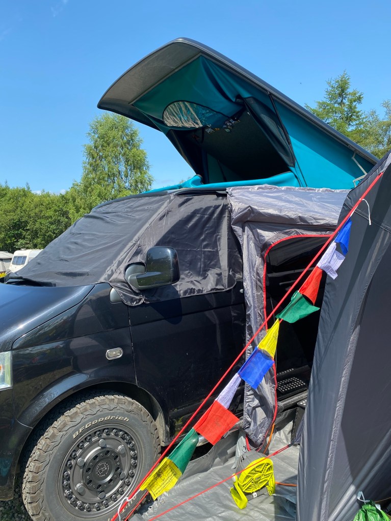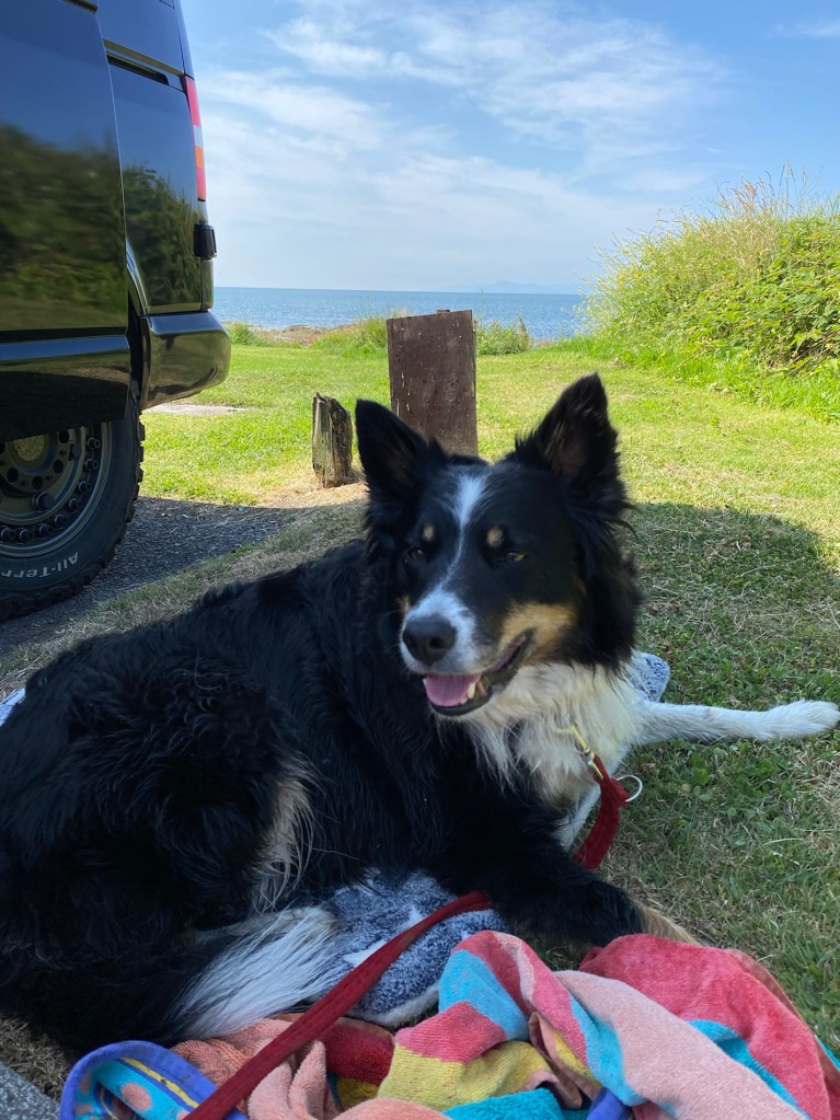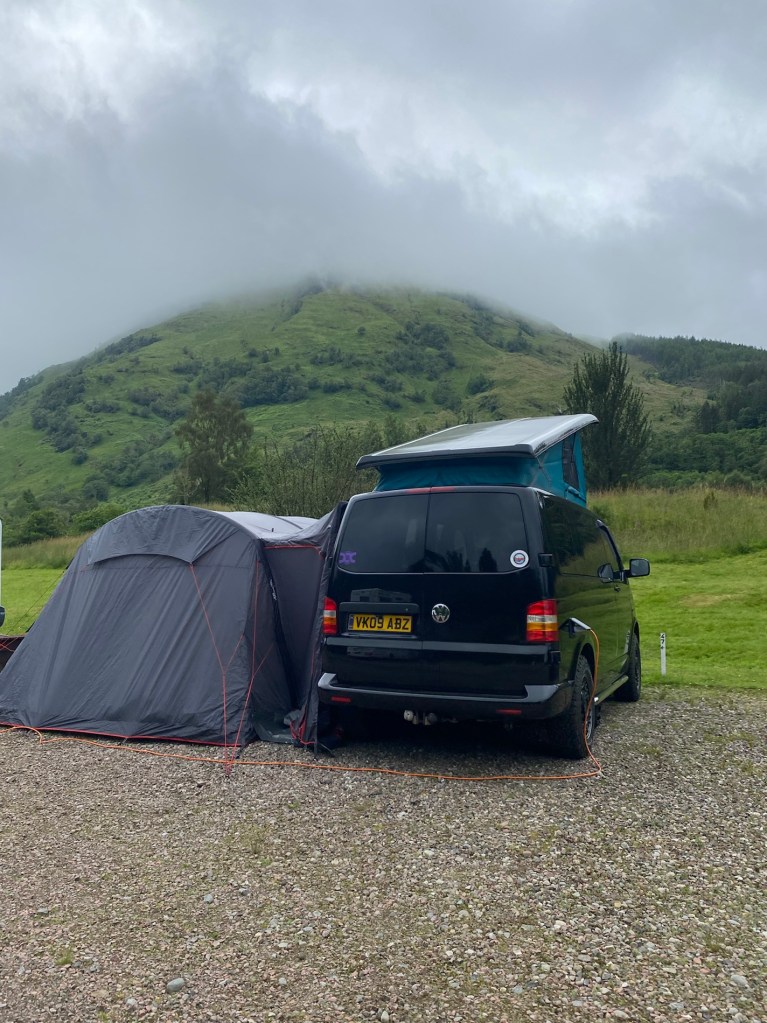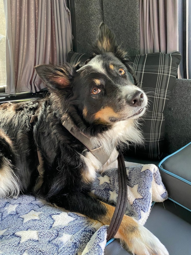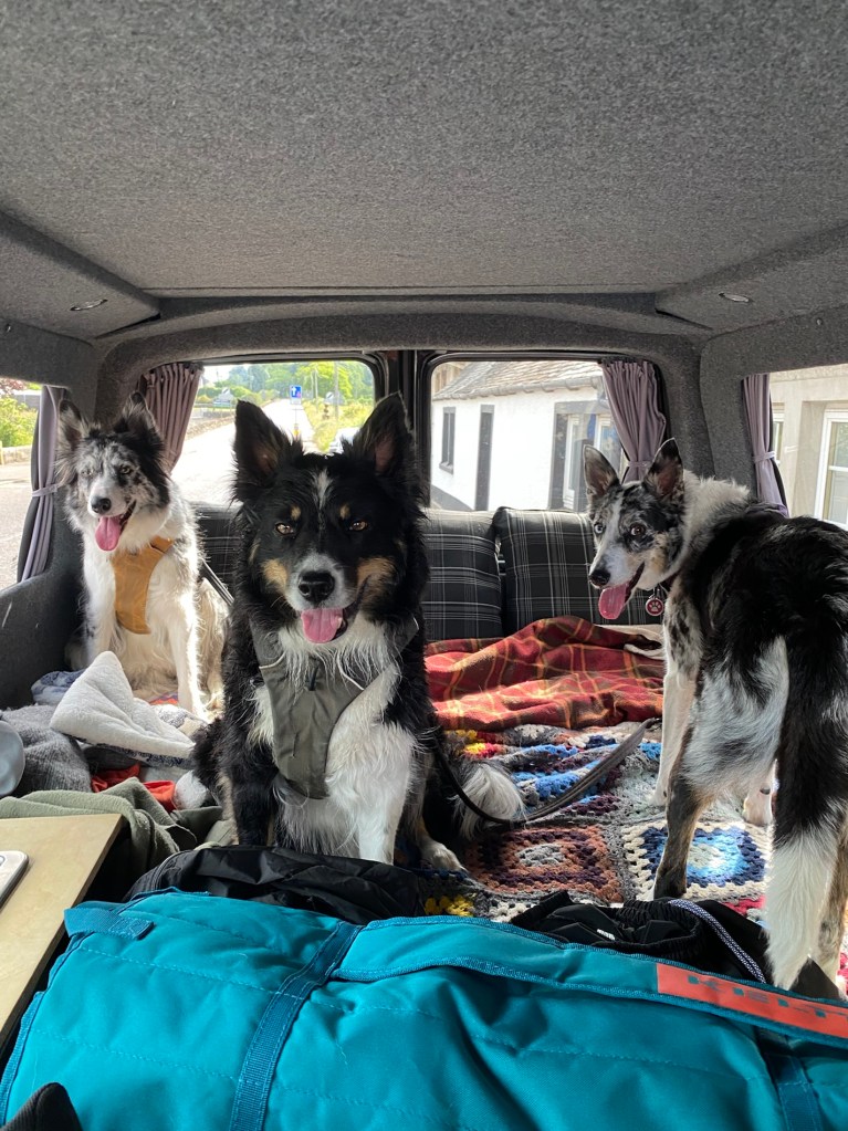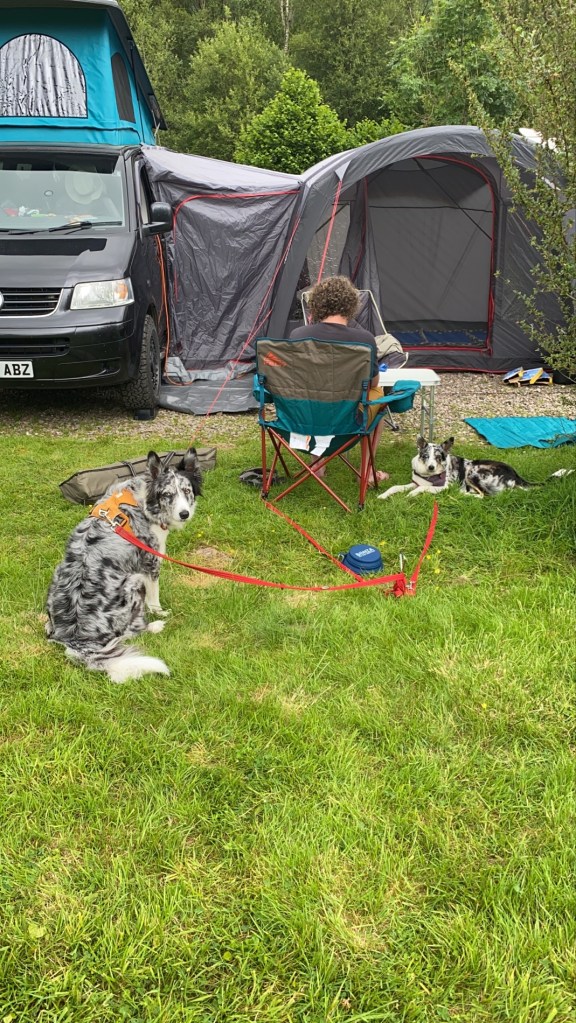 I say that and I didn’t get the best sleep last night but that was mostly dog related. We put the dogs in the awning and like miss inquisitive Bhruic realises she can get out of one of the doors and I hear her trying to get in the van at 4.30am! From then on we were the proverbial pupper trampoline!