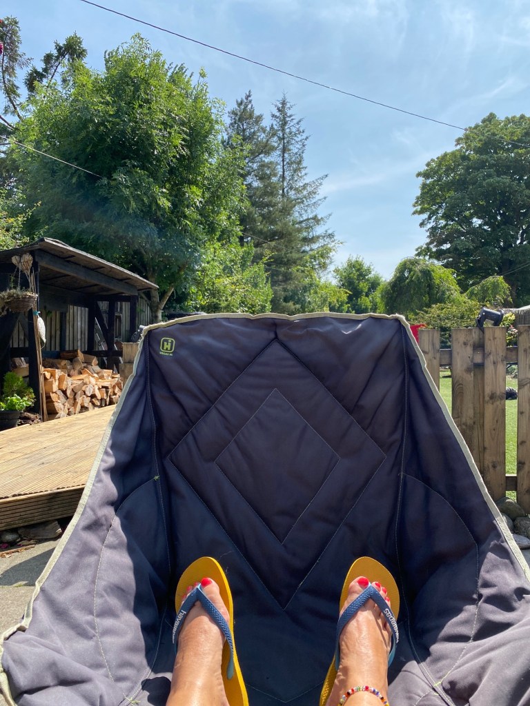 He’s also packing then van just now while I sit out in the sun like Lady Muck, writing this and painting my toenails in some horrific neon pink I got free with perfume at Christmas!!! It may not really go with my mustard flip flops but I am wearing them come hell or high water… with neon pink toes…. 😆🥳