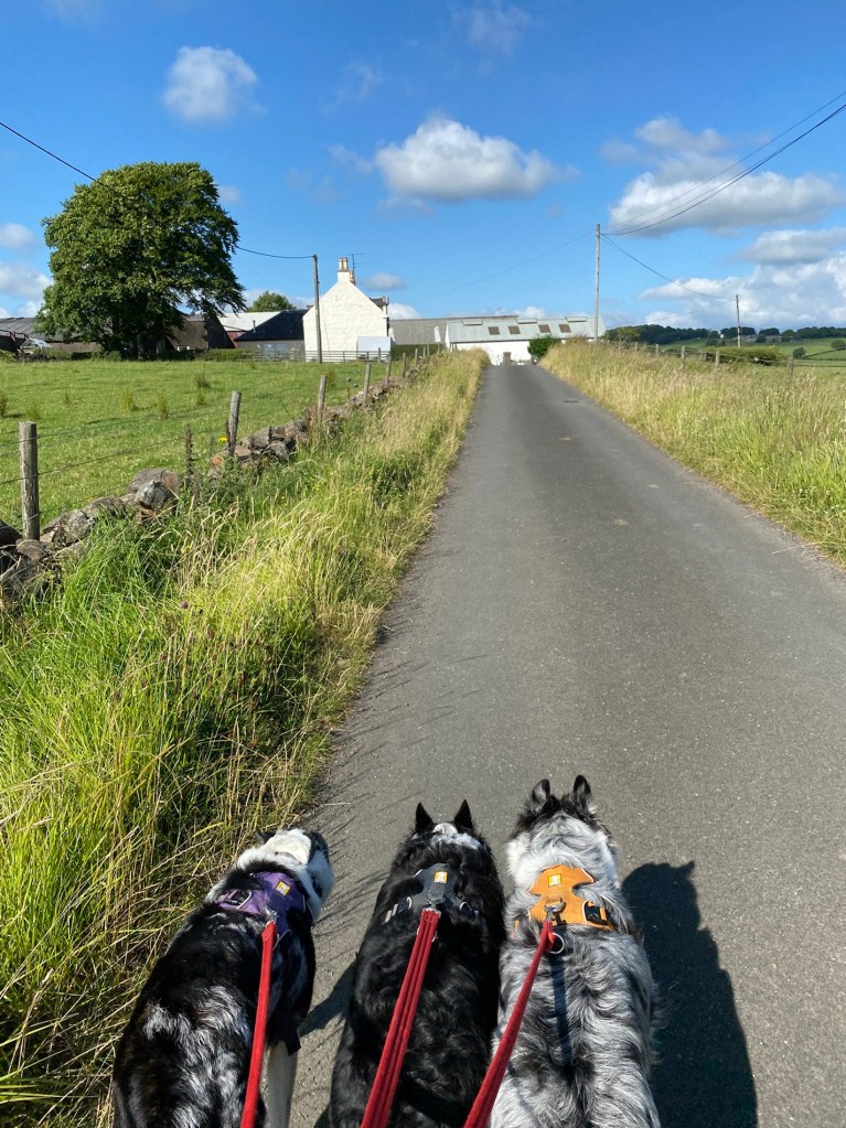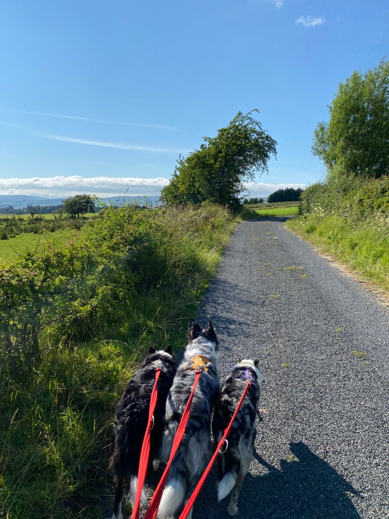 Let’s go for a walk Still love this gate! Andy the farmer (and milkman) spraying his fields with very very stinky stuff!! The joys of life in the country!Keep going mumma! Scotland from the roadside! Scorchio! It’s another beautiful day… I love it when they walk like this!