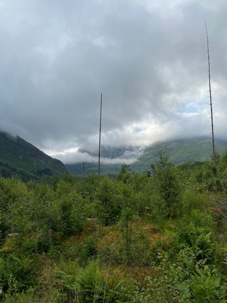 The view from the van The mist is actually pretty stunningGlencoe Visitor CentreFound this view point GATE!!!!!! Found this old wall What’s over there?!? There’s a wee hoosie! Random two forestry trees left standing! Exploring Tiny thistles! Foxglove I sent out the exploration team!! Breakfast of champions The sun came out!!!! Where did you go Mumma?!? You get this every time you come back from the toilet block!
