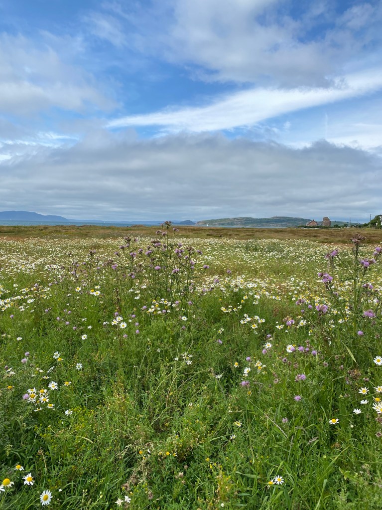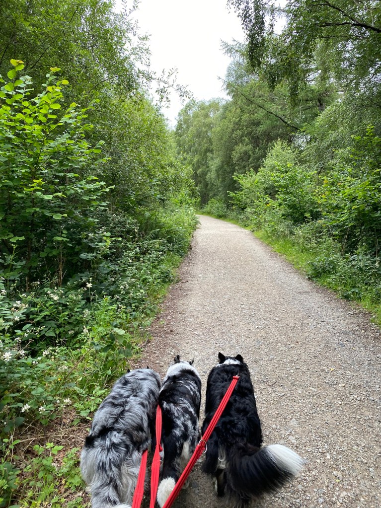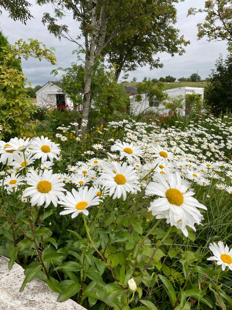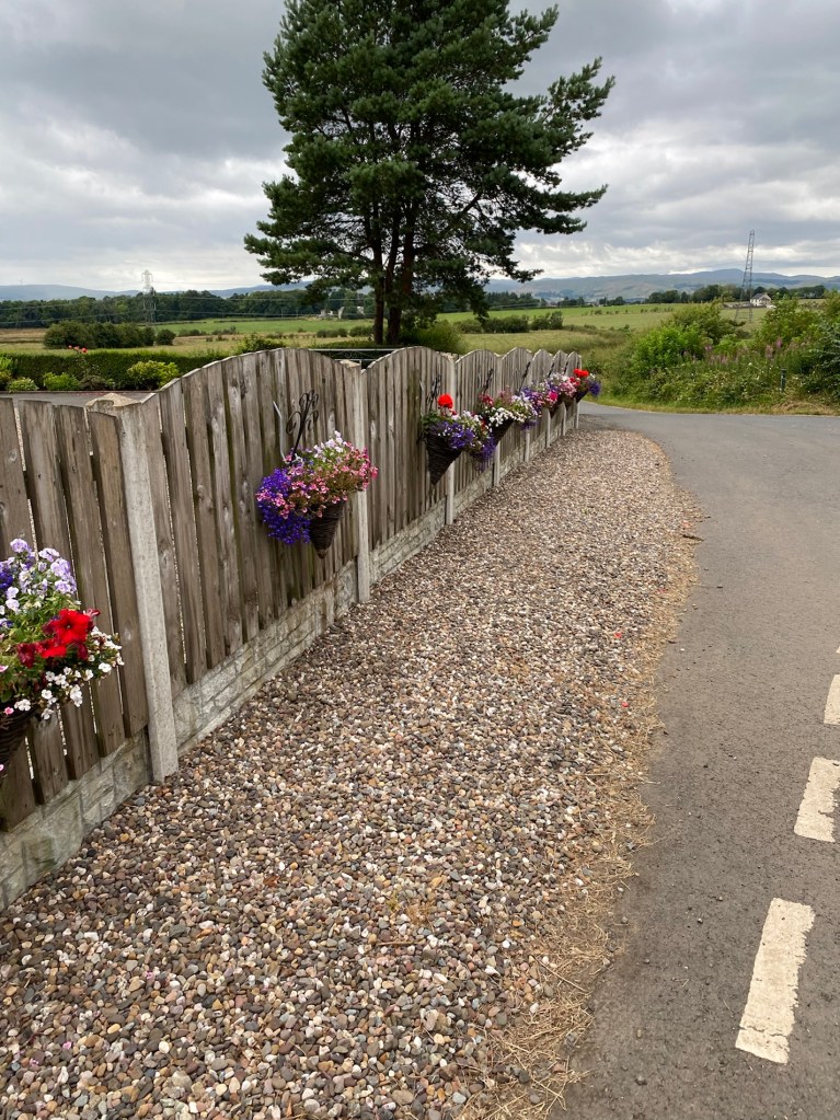 Poor Calaidh pupper has a sore leg… Craig told me it was the white one as I am not good with my right and left. I think this pic says… it’s sore mumma… Muddy track today! Lots of thistle! And a 🐝 Spot the puppers 🐶🐶Different types of thistle Ever get the feeling you are being watched?!? 👀👀👀👀👀So many cows in this field!! The farm near us has a lovely wee urn of flowers that I’ve not noticed before Some very dead thistles (why is there no thistle emoji?!?) Lovely hanging baskets A sea of giant daisies! Dark clouds threatening rain the whole way