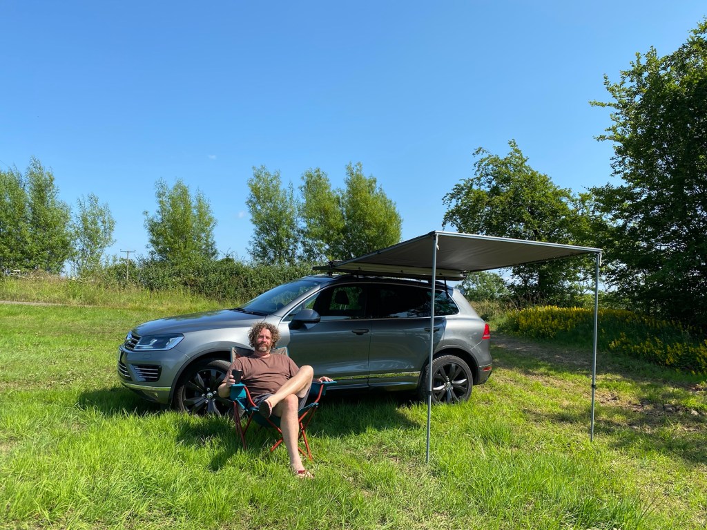 Craig’s new birthday camping chair… chair…. Not car….. from his mum. He is loving camping chair life!!!