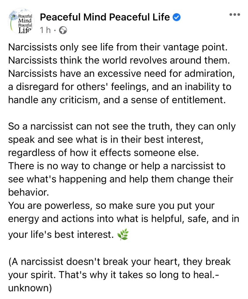 Now I’m not naive enough to think that one narcissist changed everything…..