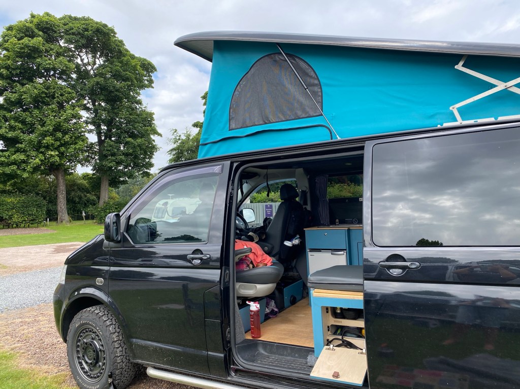 Woke up at 7.20am…. A lovely long lie. So both vans woke up and Auntie Jac made coffee and we had overnight oats for breakfast. she was very well prepared!!