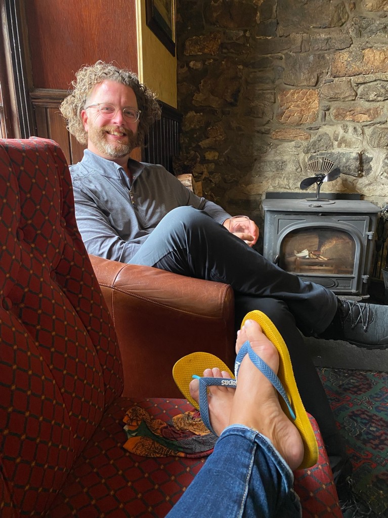 So we’re now in the village pub. I have my leg up (stop it!!)