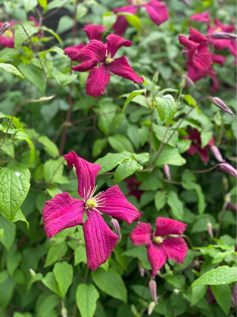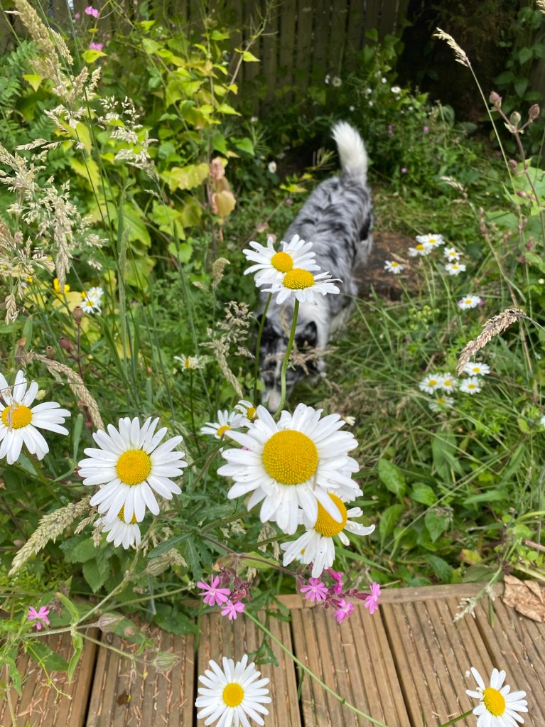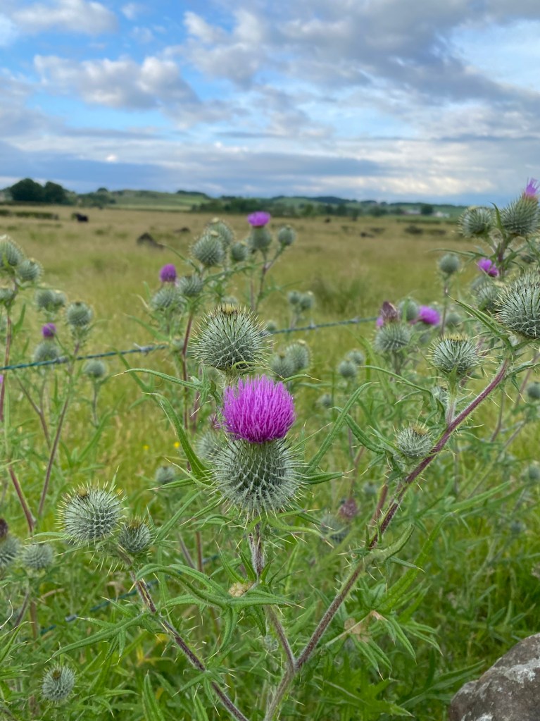 We’re sitting outside this morning again. Rain is forecast and in fact, it should be raining now. Instead it’s hot. The sun is desperately trying to burn through. Long may it continue as Mum and Dad are coming through to see us this afternoon and it would be lovely if we could be outside!