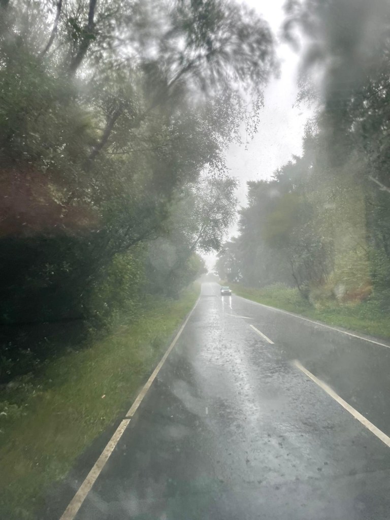 It was torrential rain on the way down. It was so bad I had to slow right down and got covered by wash from a passing car at one point which totally blinded us.