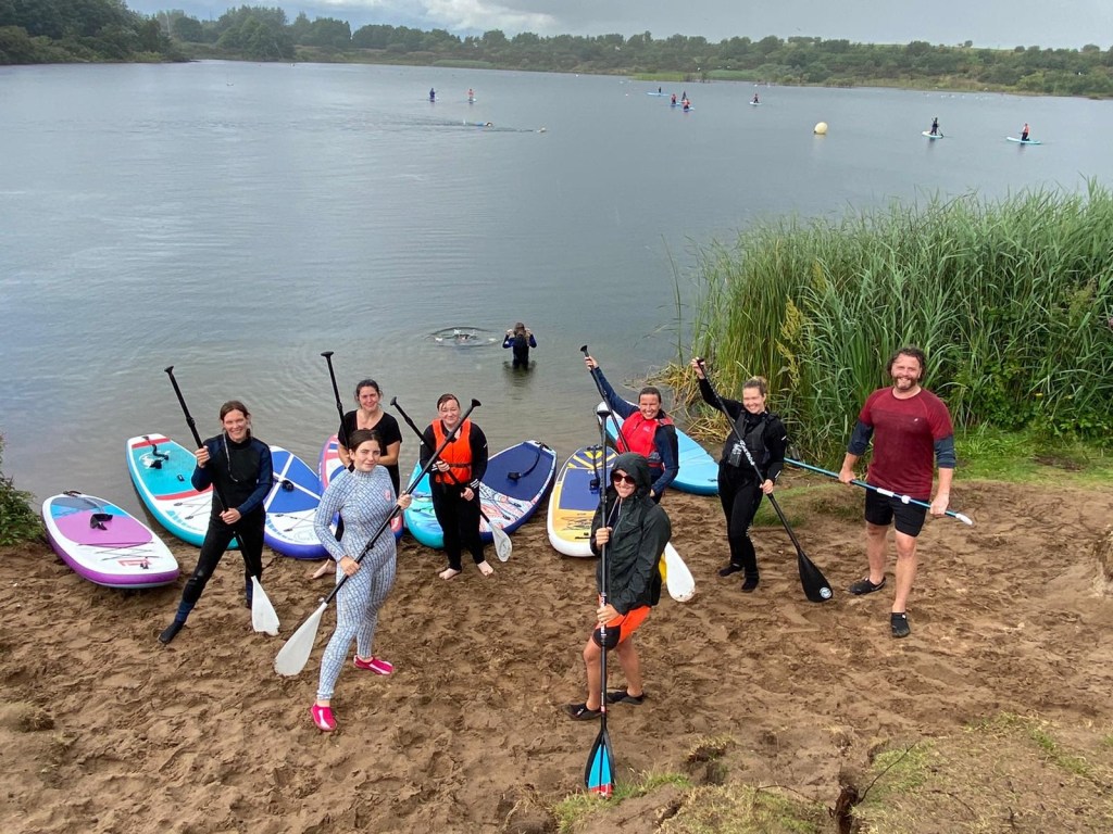 So this afternoon we went paddle boarding with the Fit Body Farm and what a laugh we had! We went to Booker Pond in Irvine.