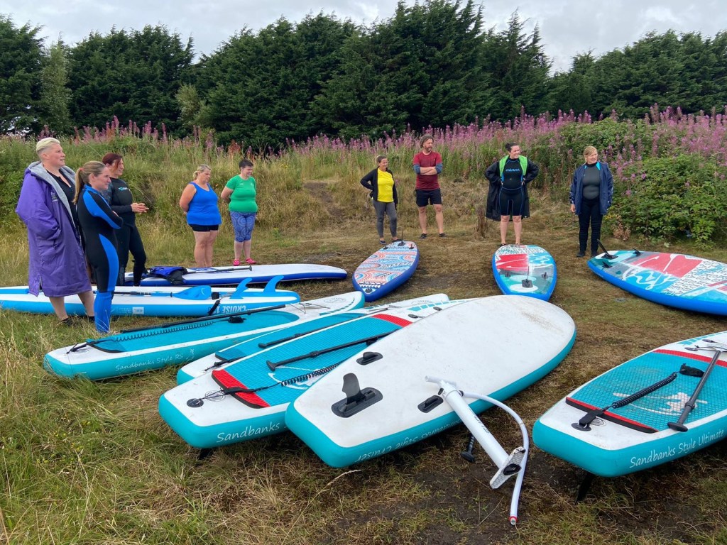 Here we are getting our pre-paddle boarding chat I’m not in this one… I realised the lights were left on in the van and had to get the key to turn them off!I’m back! I thought the buoyancy aid would hide the wetsuit look but not so much…..