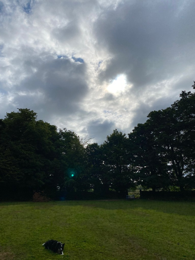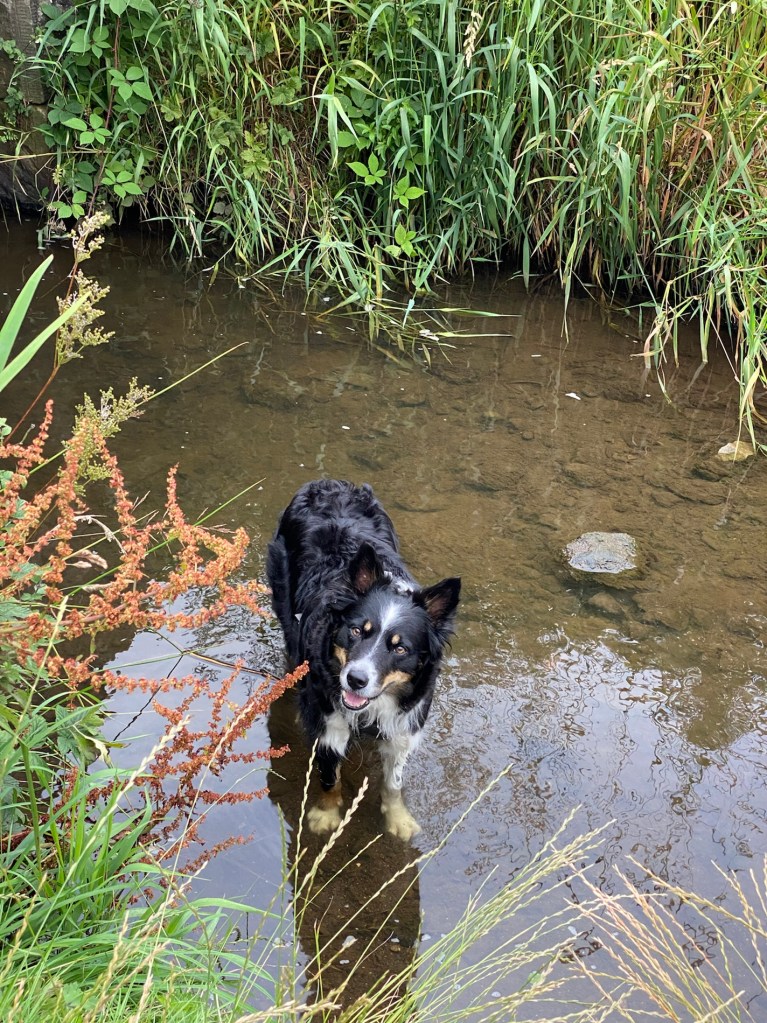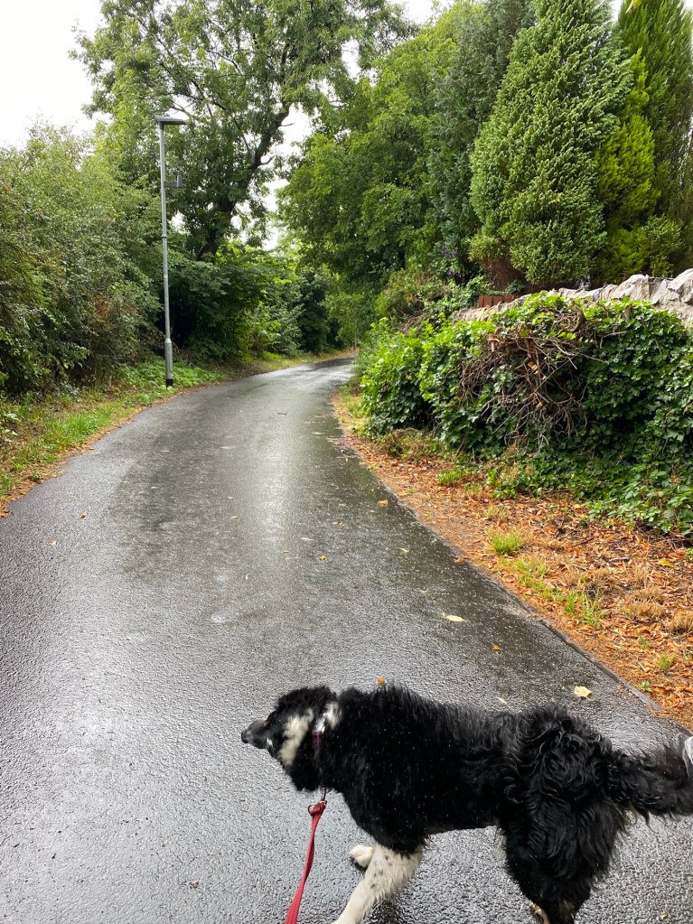 Came back and dropped them off and took Calaidh out. She was obviously a bit too hot today. It’s super muggy and we have thunderstorms forecast. She kept lying down in long grass at the side of the road to wait for me!