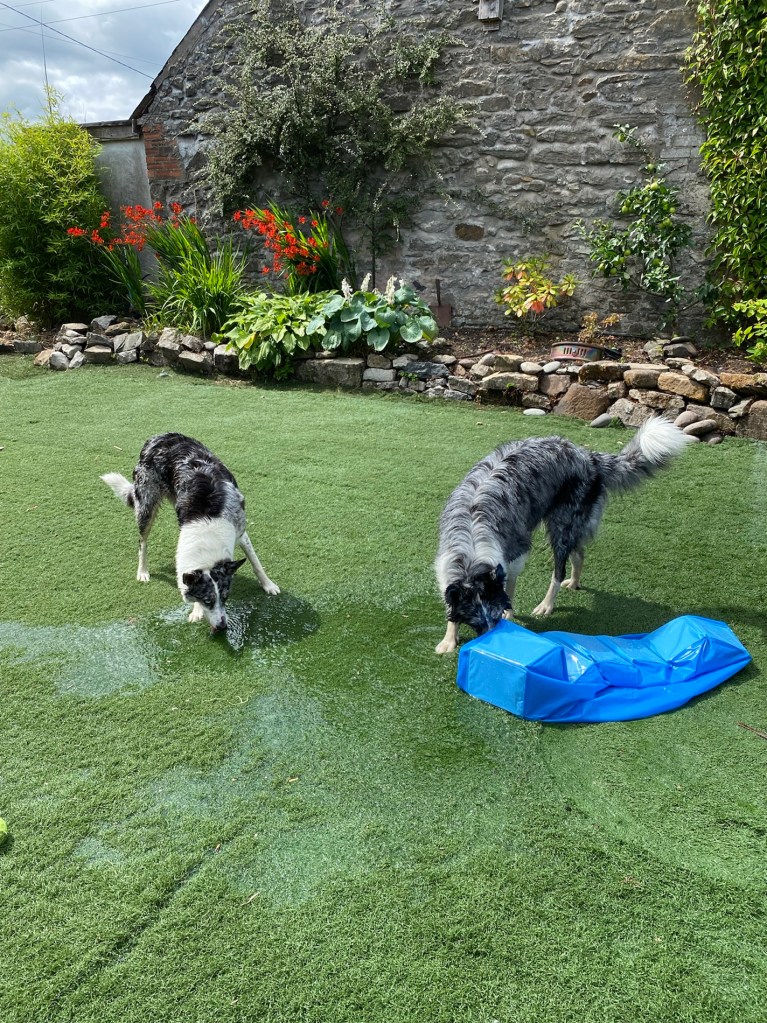 So this is my view now. It’s lovely and sunny again… and warm despite being 7pm. The dogs have been fed and are playing around in the sun.