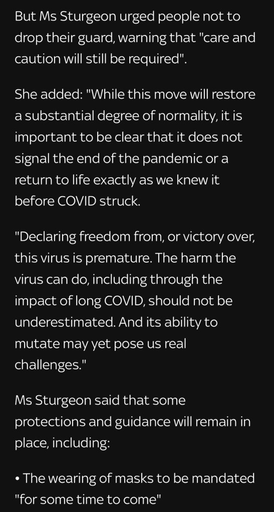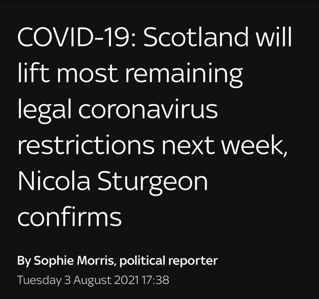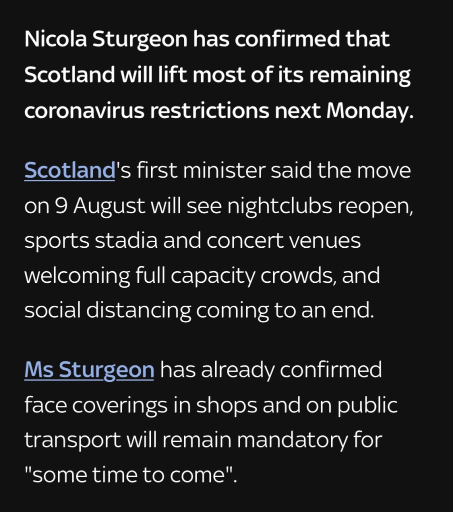 I missed this today but there’s been another announcement about COVID-19 rules relaxing in Scotland 🏴.