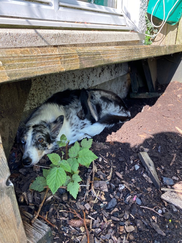 Please just throw this….Freya has made a wee dinky den under the old garden bench…. Bless.
