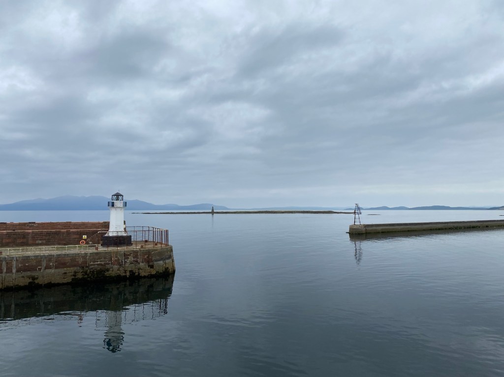 We stopped for Fish and Chips at Hooked and Cooked at the ferry terminal. Sadly there were not the best but we ate them with this view…… in Lamlash!