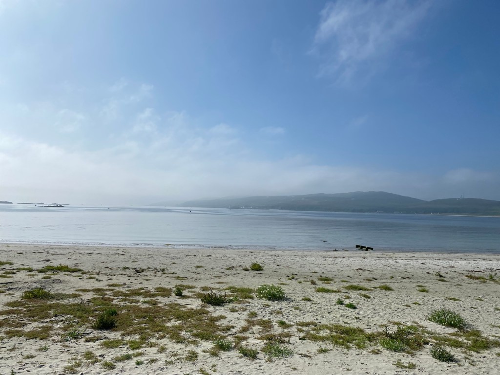 So we were up early this morning and there was evidence of some sunshine! This is the view from the campsite which is about the first time we’ve seen it.