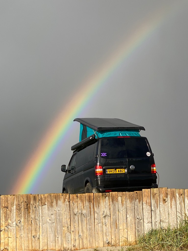 The weather overnight was wild we kept the pop top down all night and the van rocked in the strong wind off the sea. There were moments of torrential rain which woke me up but I cooried in and fell back to sleep. Everytime.