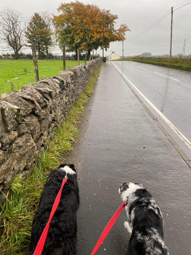 So my day so farā¦. Dog walk with Calaidh and Freya. Then dog walk with Bhru. Itās very wet!!!
