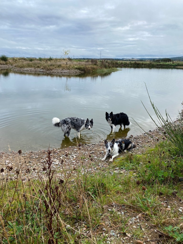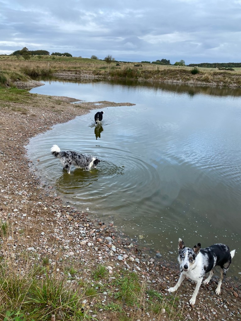 I took them down to the pond again. They love playing around here. We were very lucky that the site was so quiet so we could leave the dogs running around in the dog walk area…. They had a blast.