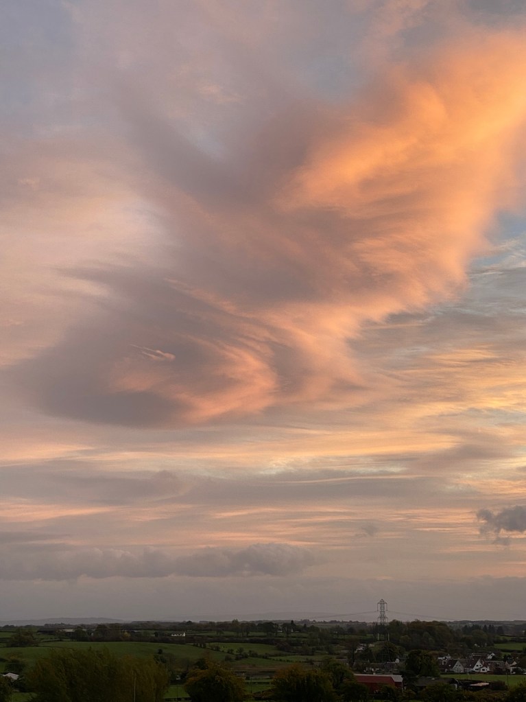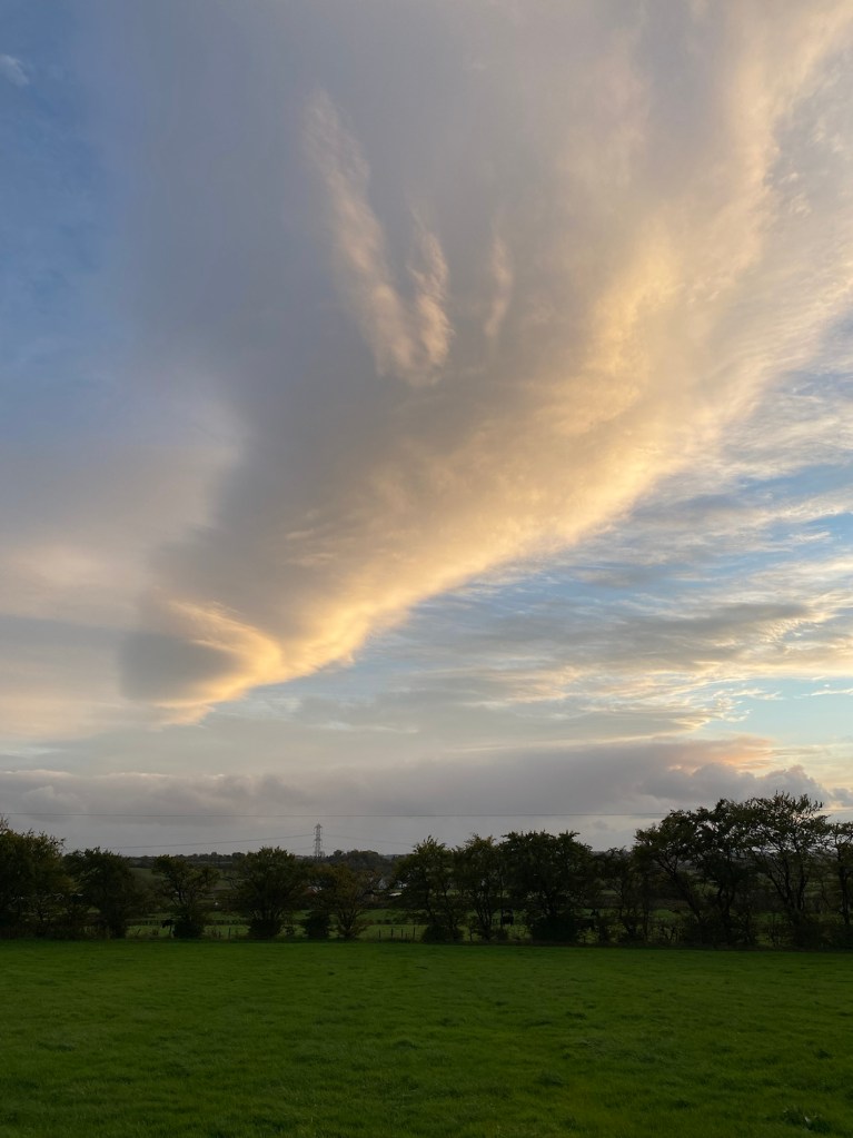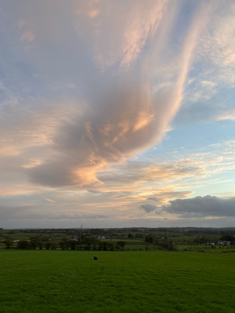 So I came home from work and took the monsters out for a walk and a good game of frisbee. They sky was lovely again tonight. strange cloud formations.