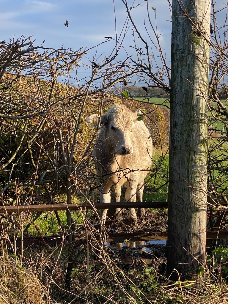 Then 3 cows in the next field catch wind of us. They start running down to the bottom corner of the field the sheep should be in. Itās almost as if they are trying to tell the sheep we are coming. They are running kicking their rear hooves up in the air.