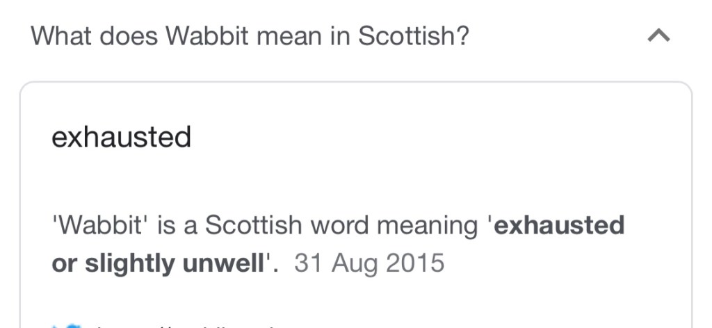 I’m a wee sorry soul tonight. I’m so bunged up and wabbit.