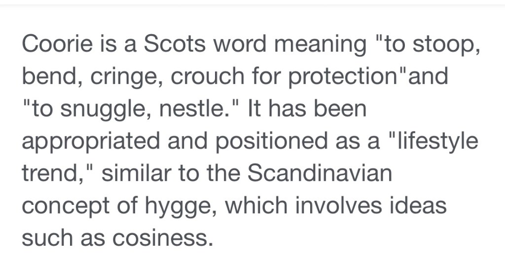 I’m off to eat a hearty stew for dinner and coorie in for the night.
