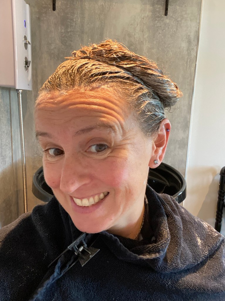 So straight home, 3 sips of coffee, quick shower and then across the road to my lovely neighbour for my hair appointment.