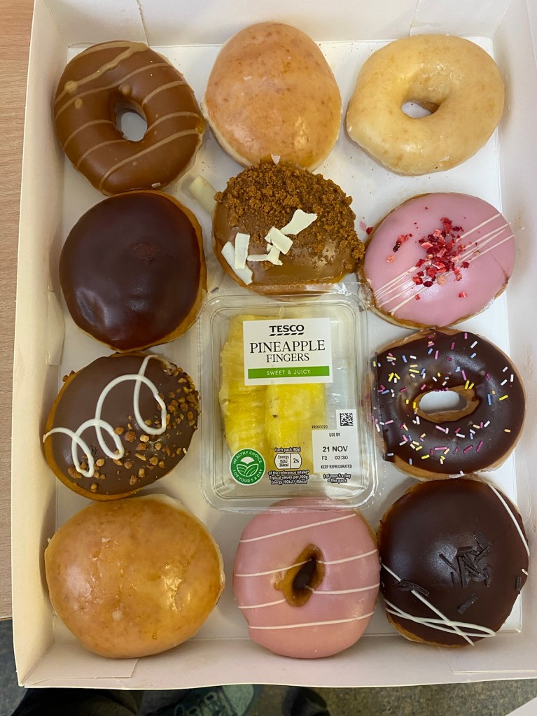 Check the 2nd row up…. That’s a special team of folk eh? They know I’m on my FBF challenge so got me pineapple in case I didn’t want a doughnut 🍩…. I had the one above the pineapple! 🤫🥳
