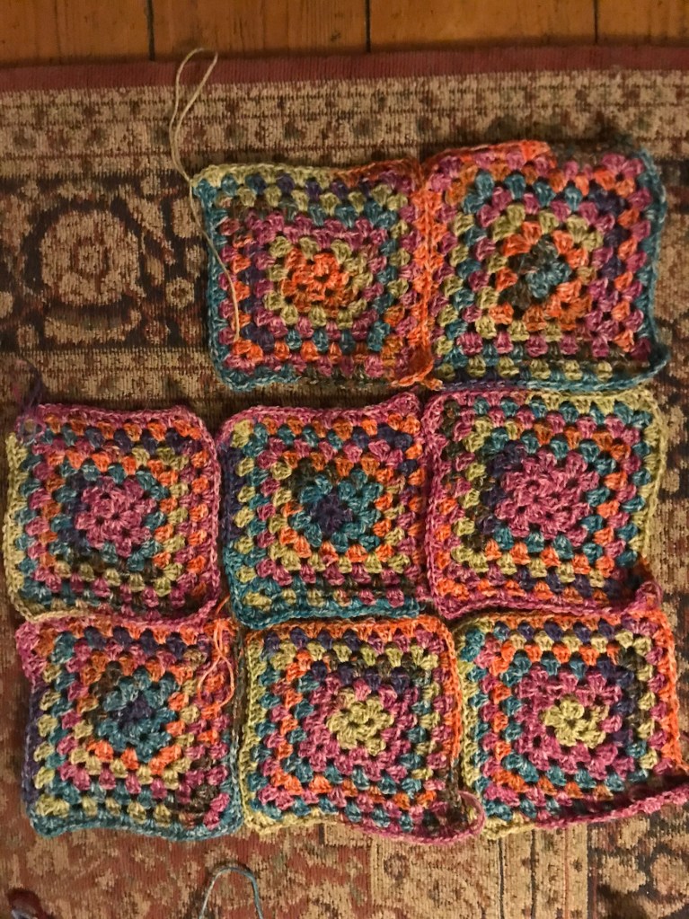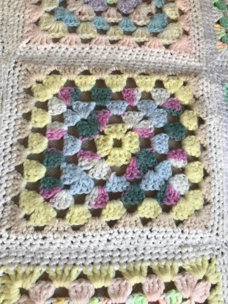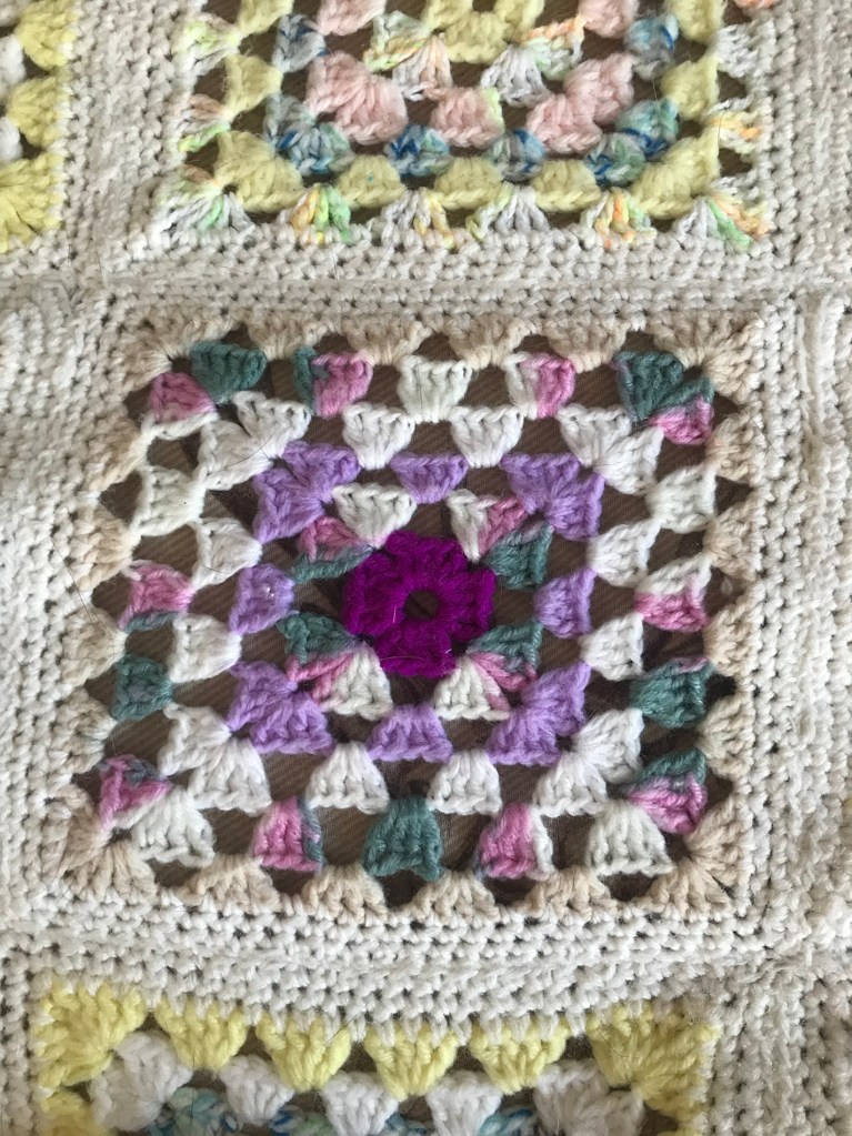 Gran made me these when I was a wee girl. I grew up with these blankets and have had them in every bedroom I’ve ever had. I’ve marvelled over the colours she picked. I have favourite squares…. 💜