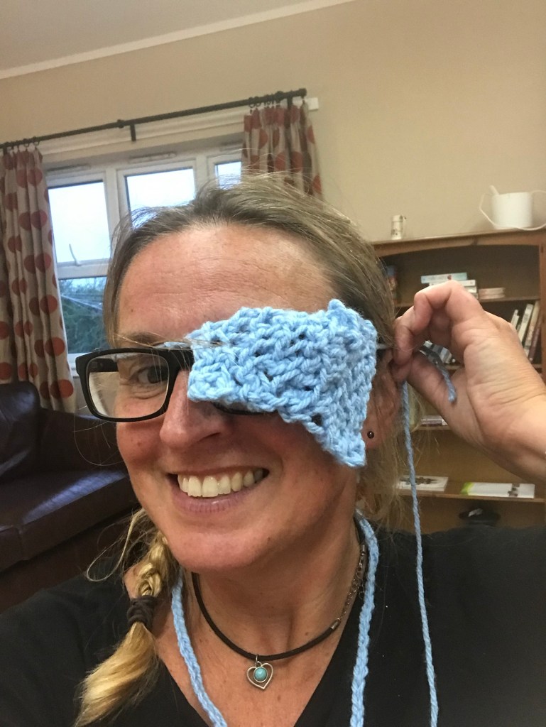 We were in fits of giggles that night as we couldn’t crochet in a straight line… I reckoned it looked like an eye patch!