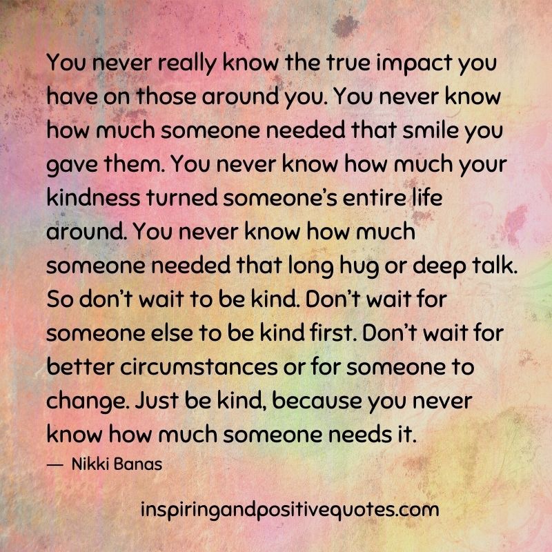 You never know the impact that you might have on other people. Always be kind and you may be that person to someone.