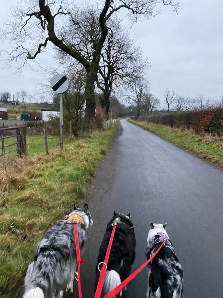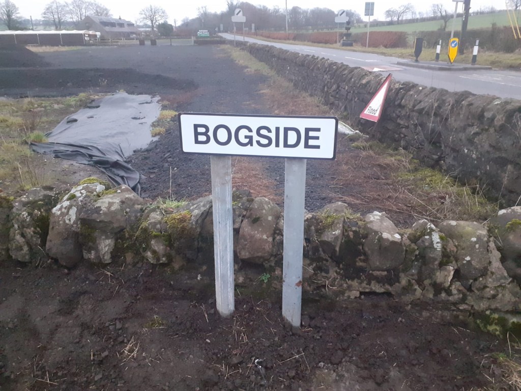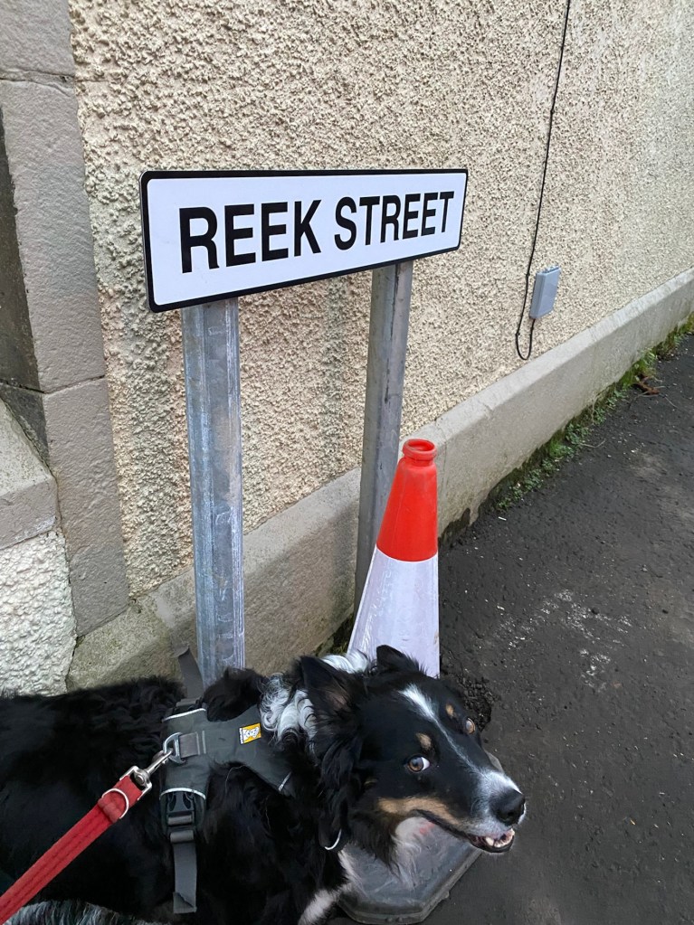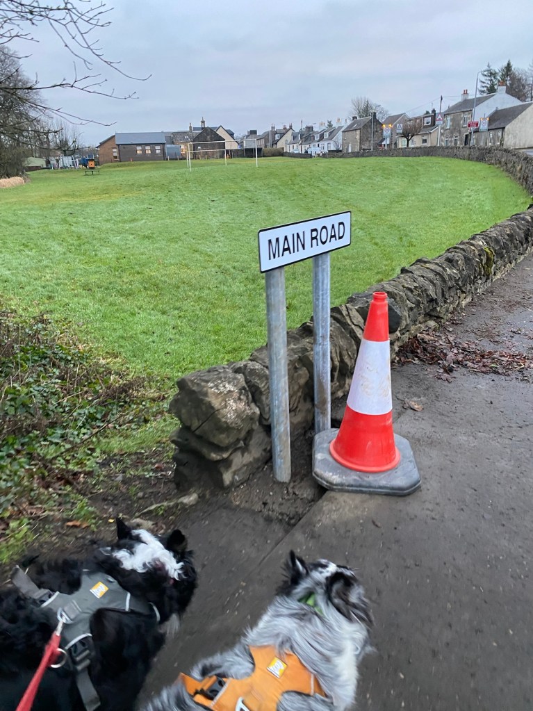 I decided to go to Kilmarnock with Craig while he went to a job so I had an hour to shower and walk the dogs. We went on a super fast walk! I was really surprised to see that our village suddenly has road signs after all the years it managed without.