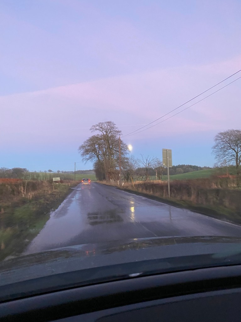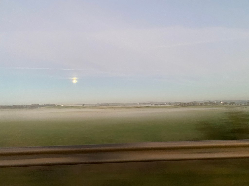 So we’re both clear and good to go. The sunset on the way here was breathtaking. There’s low lying mist everywhere as it’s so clear but cold. The Isle of Arran looks stunning on the horizon and SO close. Makes me think of the lovely Anne again.