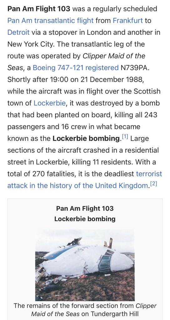 Dad had friends from Lockerbie. We found out quite quickly that their family was ok. It still didn’t take the sting out of the fact that this had happened less than 58 miles from where we lived.