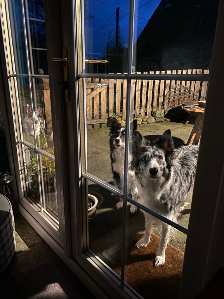 Home, let the dogs out the office door, shower and then went through to the sun room and love that they are all waiting for me… Calaidh barks in case I don’t know where they are…. As if?!?