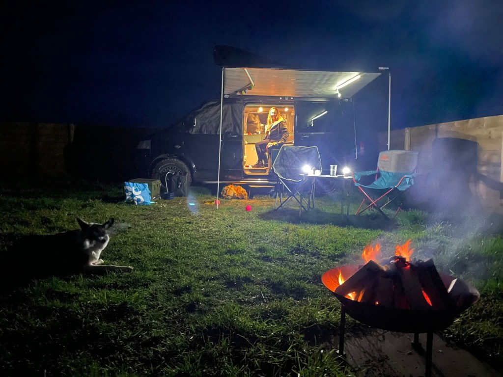 (This is the campsite with the fences around the pitch for the dogs to be off lead).